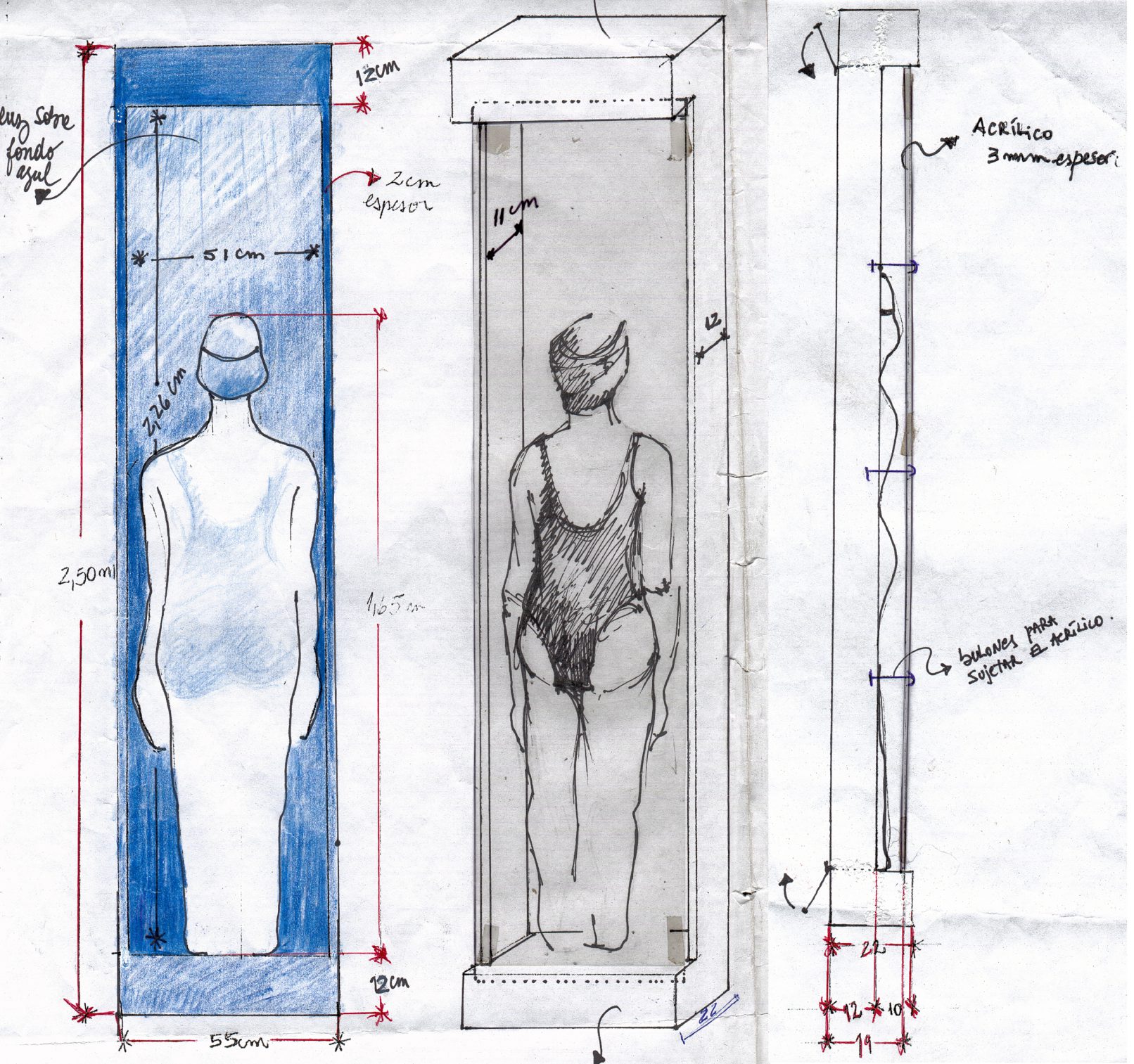 Plomo / pana azul / acrílico grabado / acrílico / luz