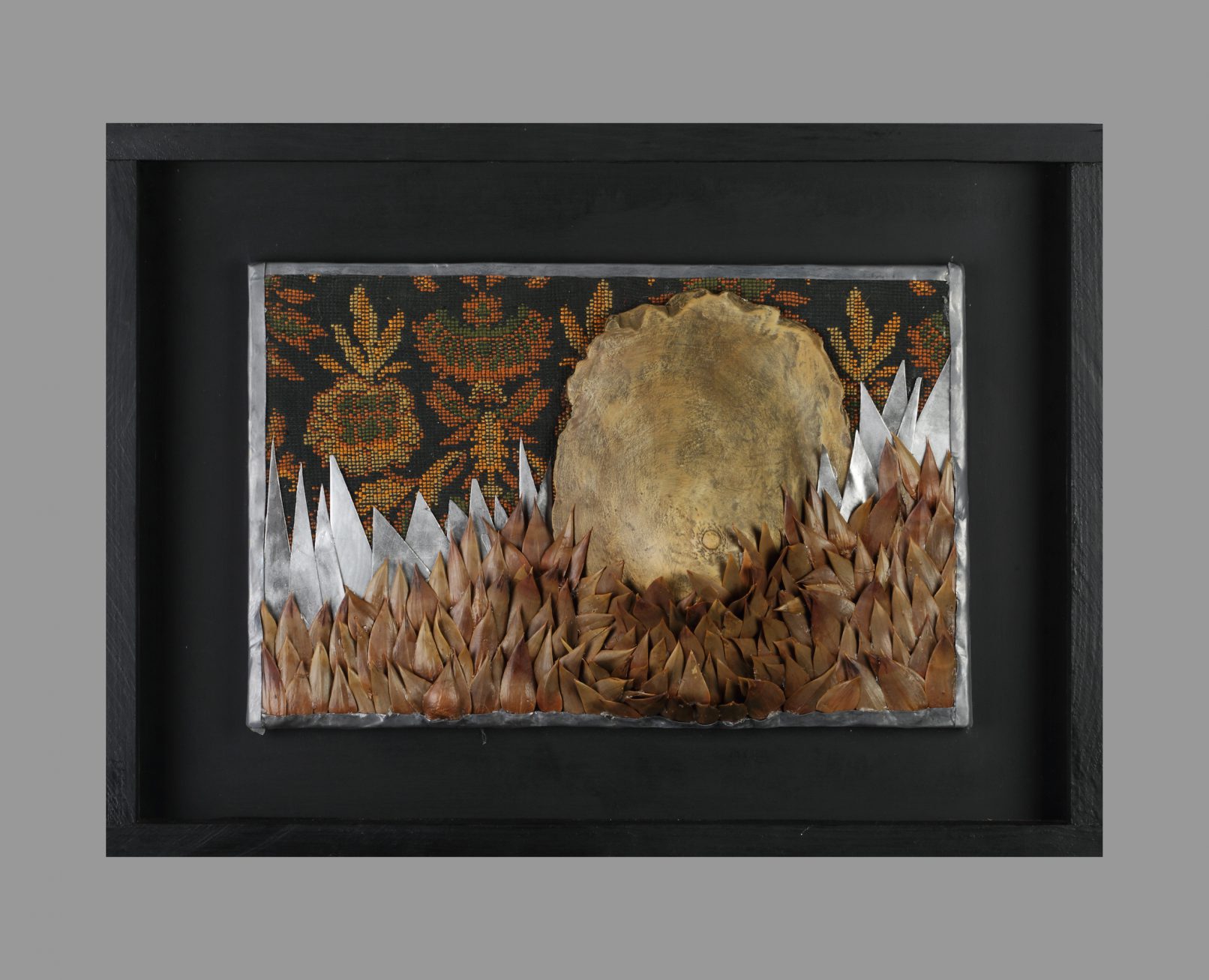 Cerámica / hojas de araucaria / plomo / tela / chapa de hierro
