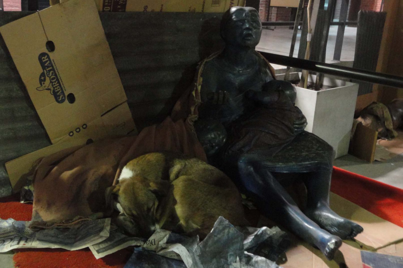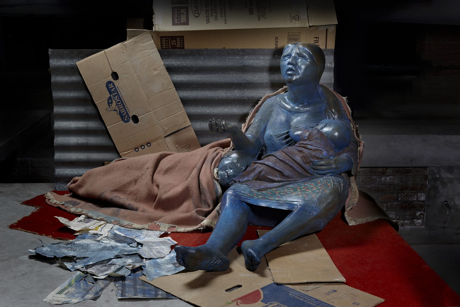 Poliestireno expandido / telas enyesadas/ yeso/ manta de lana/ cartones/ alfombra/ papel de diario