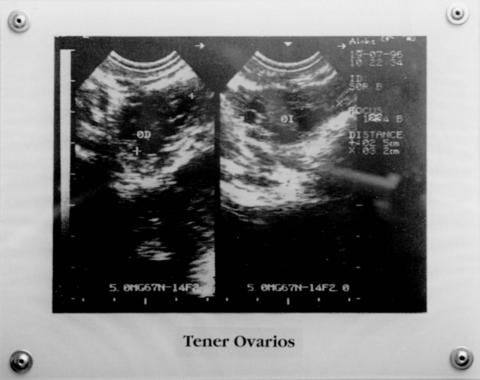Acrílico transparente / remaches / impresión ecográfica de ovarios